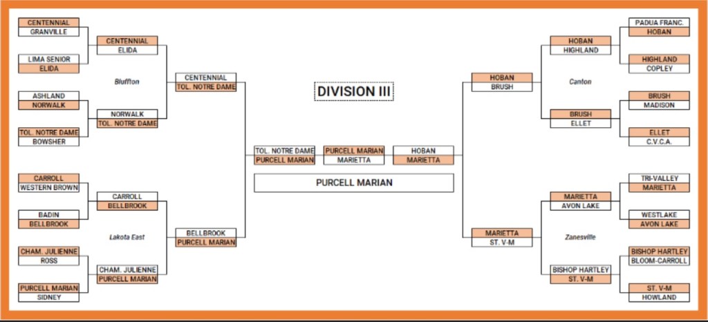 Notre Dame Academy has one of the easiest paths to the state semifinals one will see at any division. The Eagles are a deserving team. The problem is that outside of Norwalk, there are almost zero great teams in the northwest and central districts. In fact, Marietta’s path to the regionals will be tougher.