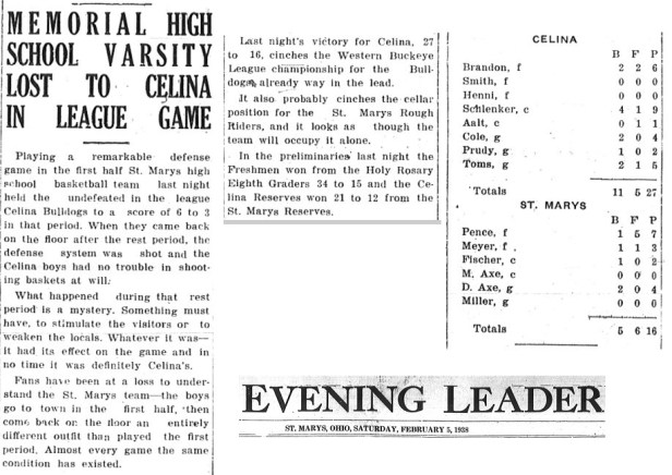 In a 1936 Evening Leader story…St. Marys joined the new Western Buckeye League along with Van Wert, Bluffton and Wapakoneta, they all joined because the Midwest League had disbanded. The WBL also added two other schools Bellefontaine and Celina. Ada decided against joining.