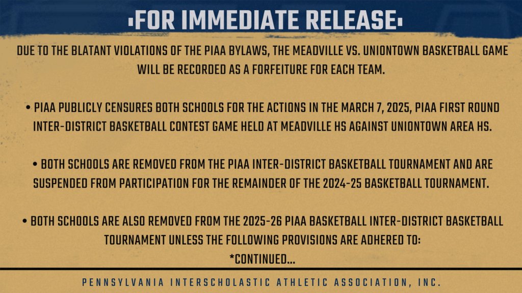 “Pending the results of the PIAA investigation, based on the information both schools send, as bad as the situation was, it should be put to rest once the PIAA makes its decision based on evidence.”