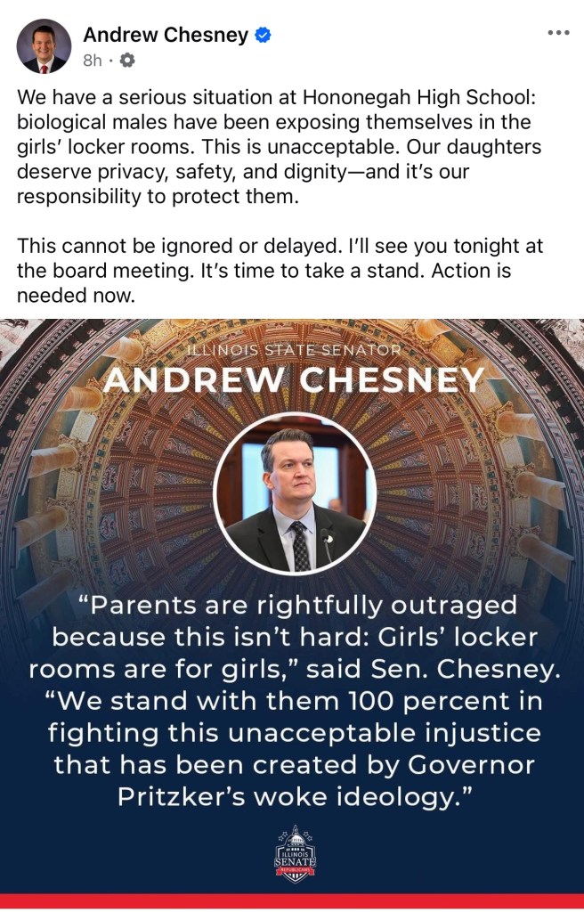 Illinois State Senator Andrew Chesney posted today on X the following-