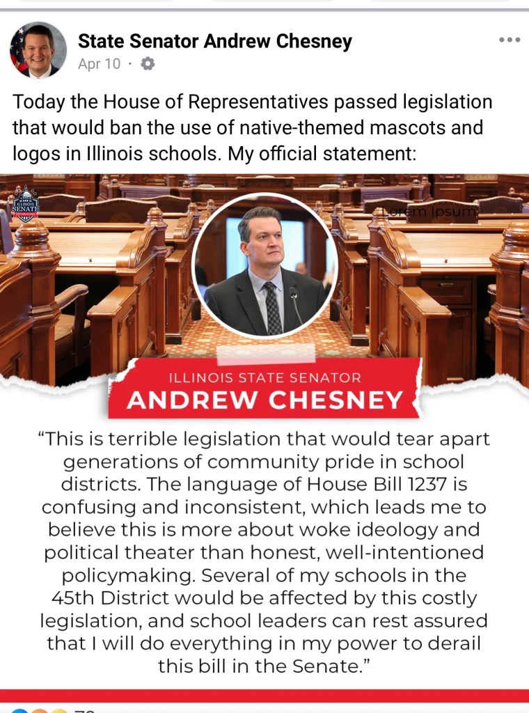 Illinois HS Mascots In Jeopardy Of Being Eliminated, Two Bills Pass House Vote