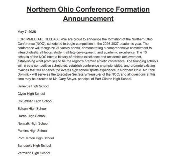 The Northern Ohio Conference (NOC) is now official after today’s announcement.