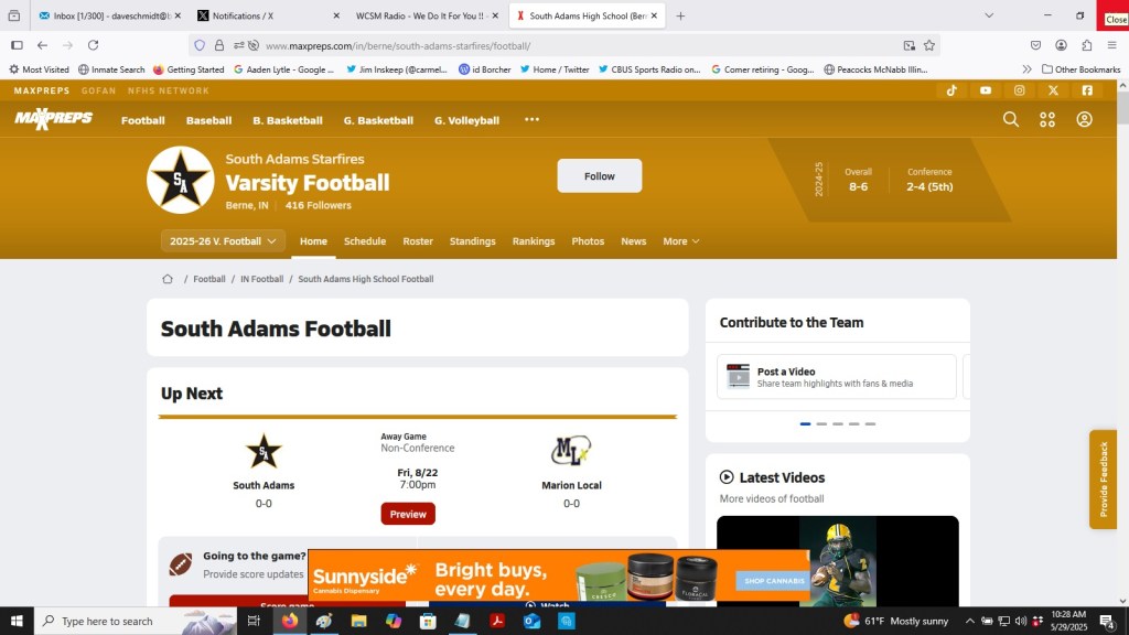 Also the South Adams (Ind) game on week 1 was not in question. For those who questioned using MaxPreps for a schedule source, knowing the Starfires are to play the Flyers…it was assumed the Bradford information was also correct.
