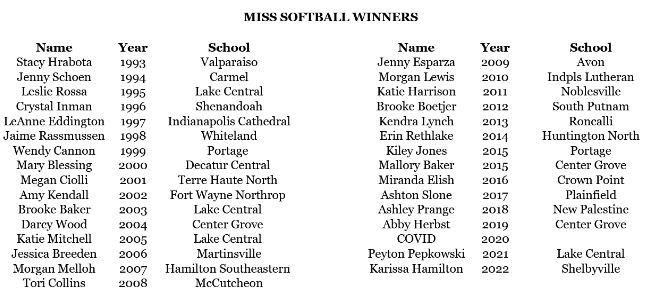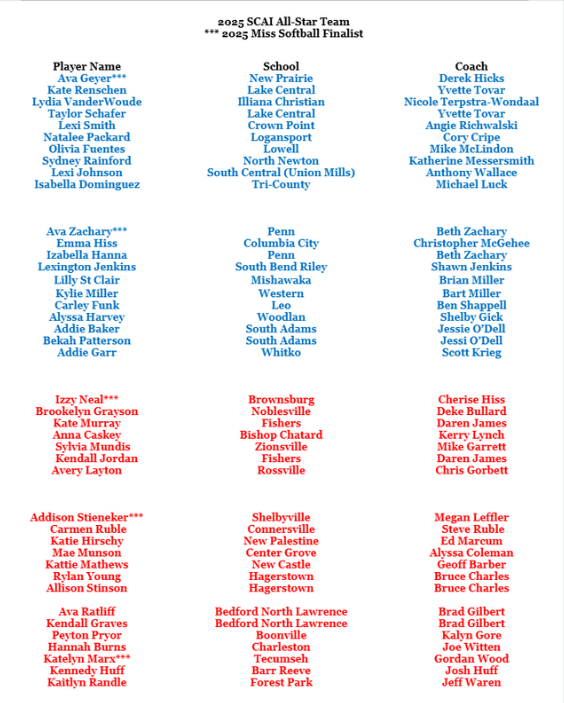 (6-5-25) The Softball Coaches of Indiana announced their 2025 Indiana All-Star teams and the five finalist for the 2025 Indiana Miss Softball award.