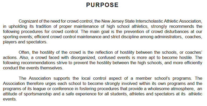 New Jersey State Interscholastic Athletic Association (NJSIAA) – Crowd Control Procedures