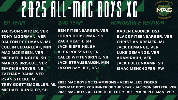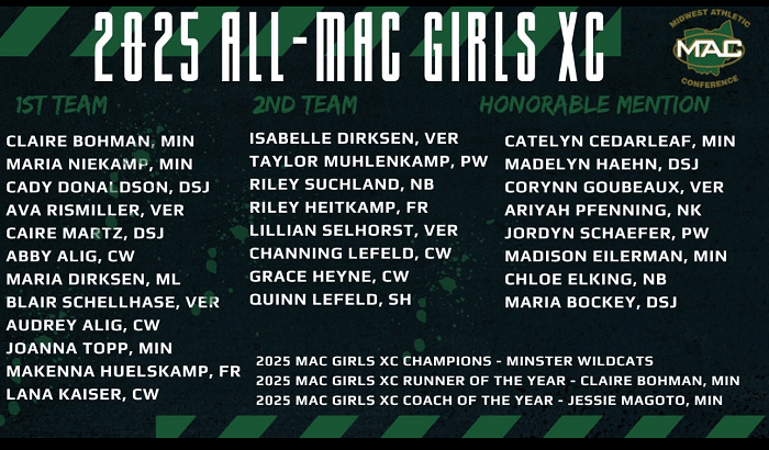 (10-12-25) The 2025 Midwest Athletic Conference (MAC) Cross Country Championship meet crowned Versailles as the boys champions and Minster picked up the girls title.