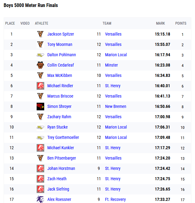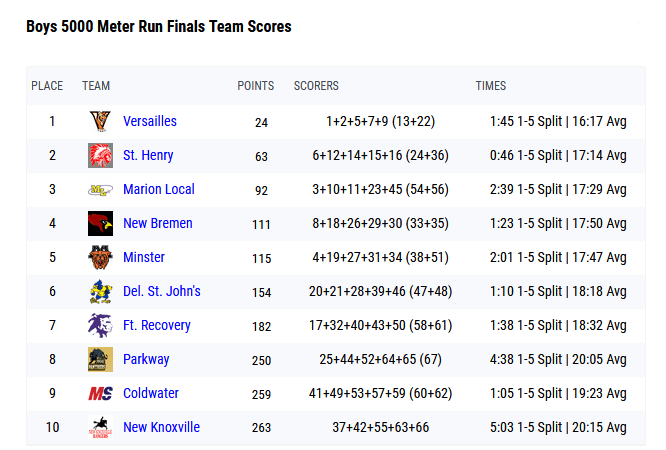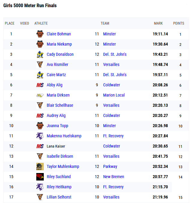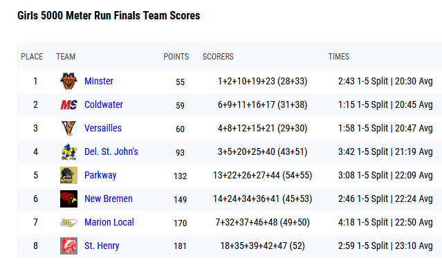 The Minster girls who have dominated the meet over the years, having won 37 overall titles…they have a 12 consecutive win streak since 2014.