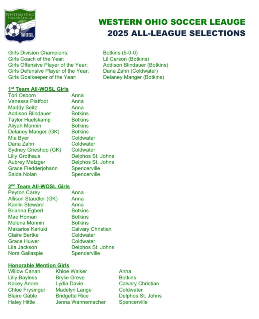 (10-14-25) The 2025 All-Western Ohio Soccer League Girls team was recently released.
