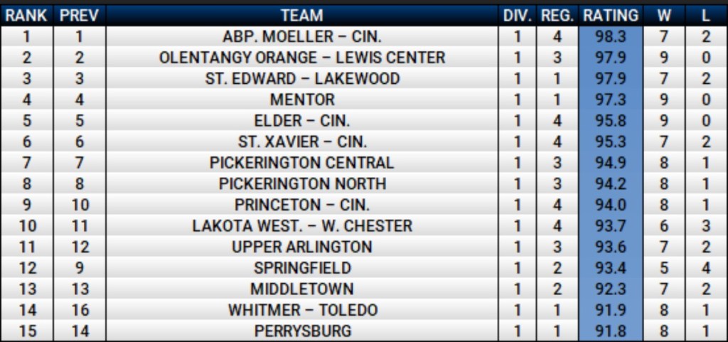 (10-21-25) I don’t want to sit here and trash the Harbin ratings: the system used to select and seed the Ohio high school football playoffs. Compared to what many other states use, it’s worlds ahead. But when a formula is limited to wins, losses, and school enrollments, imbalances are inevitable.