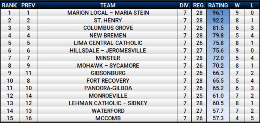 It’s rare to see a seven-win team not locked into the postseason this late in the year, but here we are. The Patriots are strong and they just happen to be in one of the toughest regions in the state. Their only losses came to Liberty Center and Archbold, both elite programs. A win over Evergreen would clinch their place in loaded Region 22. With Hopewell-Loudon, Archbold, Bluffton, and Margaretta all in the mix, Region 22 might be the most entertaining bracket in Ohio.
