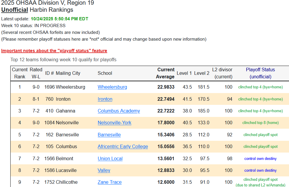 Heading into tonight’s football win over Portsmouth…the Fighting Tiger were ranked #2 in D V Region 19 and clinching a top 4 spot and a bye week. With the suspension from the tournament there will be some rearranging of the qualifiers.
