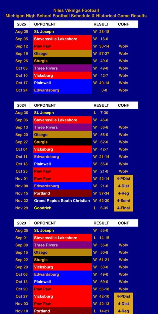 (10-24-25) The last time Niles went undefeated in football was 1979. Tonight they will have the opportunity to do it again when they play rival Edwardsburg.