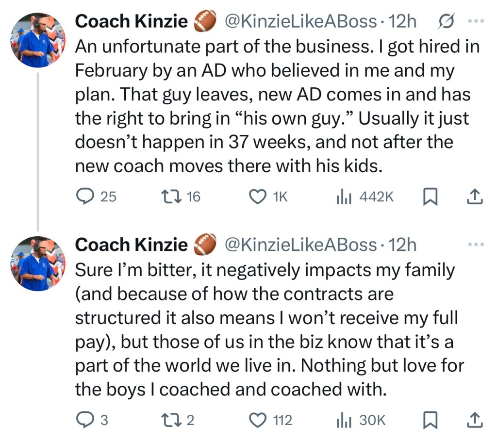 (11-5-25) Former Brandywine Football Coach Justin Kenzie has stepped down after just one season as the Frankfort (Indiana) Football Coach.