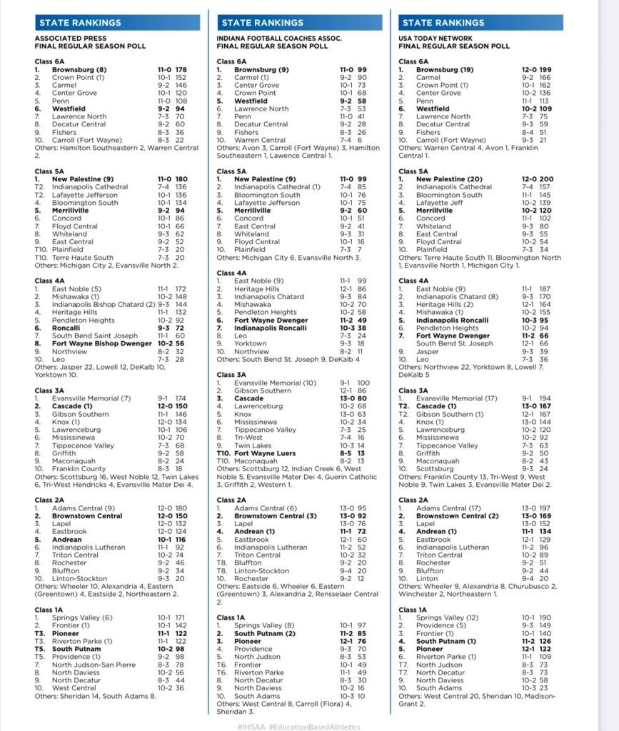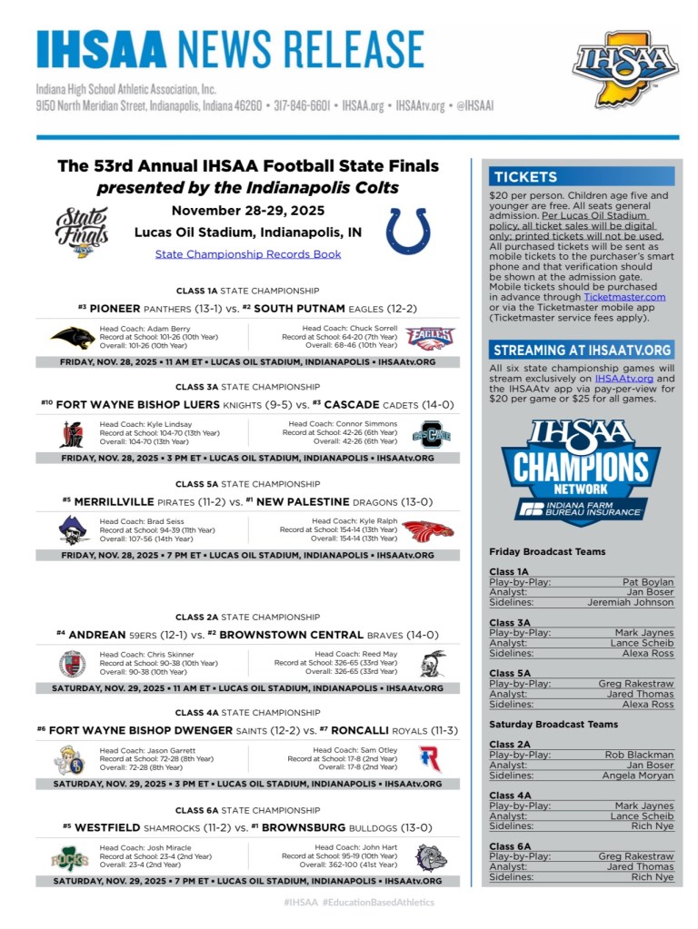 (11-26-25) The Indiana High School Athletic Association (IHSAA) allows every football team, no matter what their record is, to compete in the state’s football playoffs. To add to that they DO NOT SEED any teams, they use a blind draw and the brackets are decided by PING-PONG BALLS.