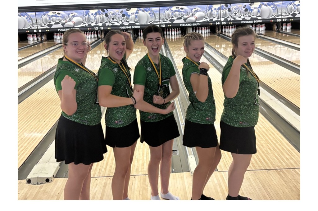 All five starters made the All Tournament Team (first time in school history) with Chloe Bruce leading the entire field with a 629 3-game series followed by Ryann Eckhardt with a 616, Marissa Hole with a 575, Brynly Huber with a 565 and Corinne Westgerdes with a 552.