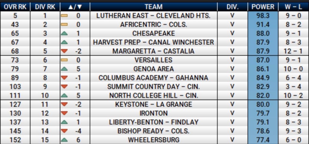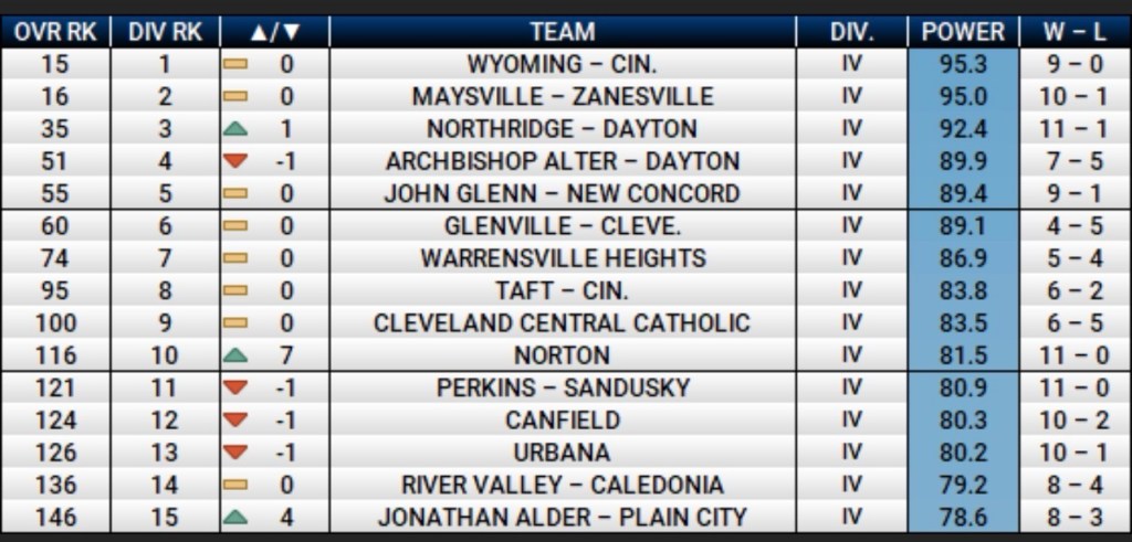 The undefeated Panthers were snubbed in last week’s debut ratings, but they left no doubt this time, climbing into the top 10 with wins over Coventry and Cuyahoga Falls. Norton’s résumé was already strong with victories over Northwest, Woodridge, and Highland.