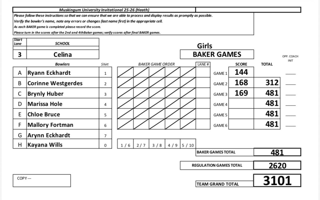 (1-24-26) Celina Girls Bowling team made the long road trip today to Mukingum University (New Concord) and it paid off with another tournament win.