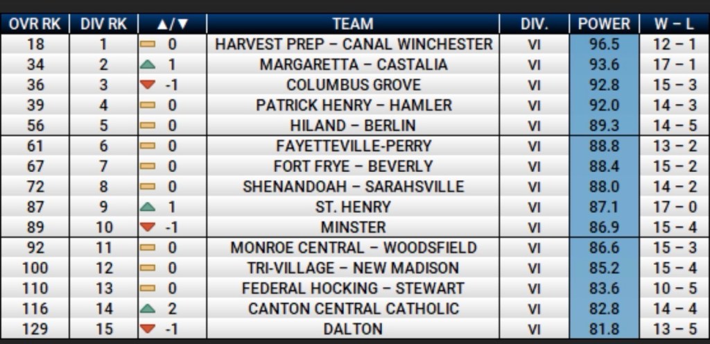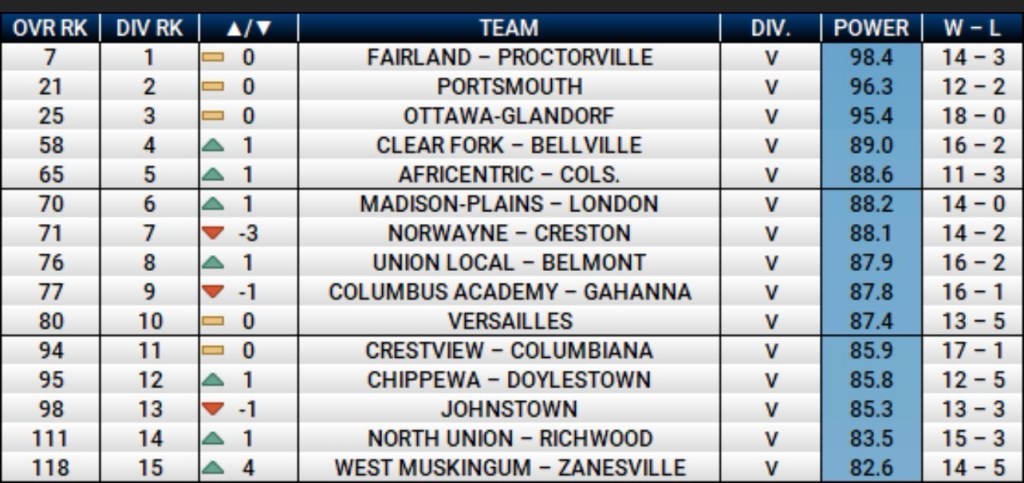 It has become a clear three-team race in Division V. Fairland, Portsmouth, and Ottawa-Glandorf have separated themselves from the rest of the field as we enter the home stretch.