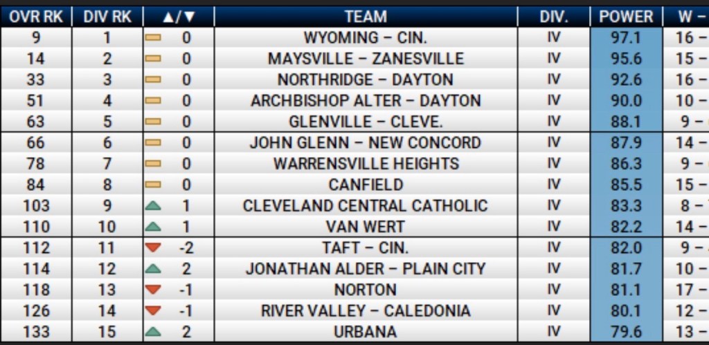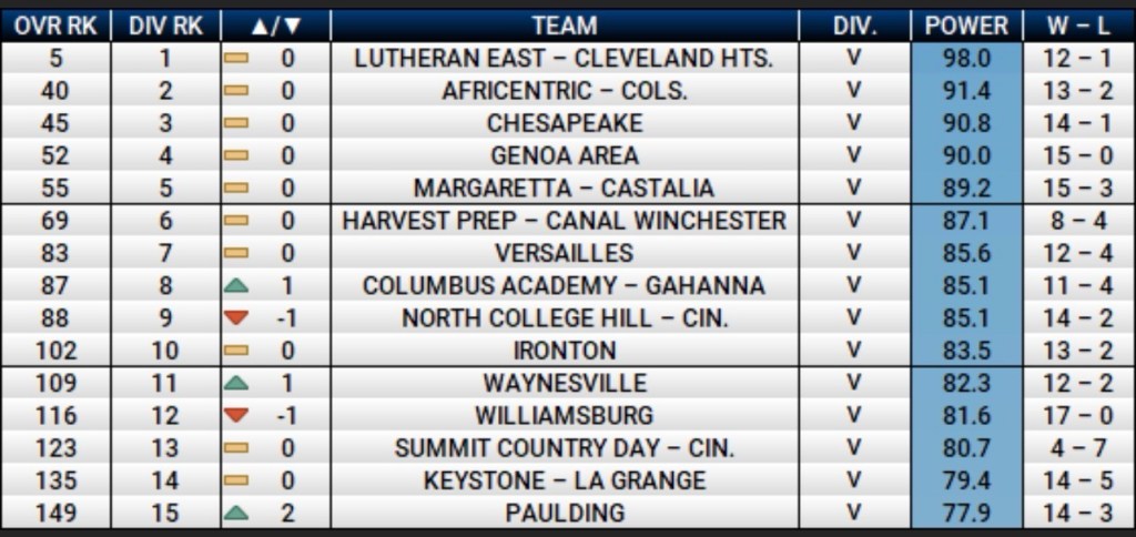 Looking strictly at the ratings, Division III turns into an absolute logjam after the top three. One team worth watching is Bishop Hartley, which rebounded from a mid-January slump with back-to-back marquee road wins at Bishop Watterson and Hoover.