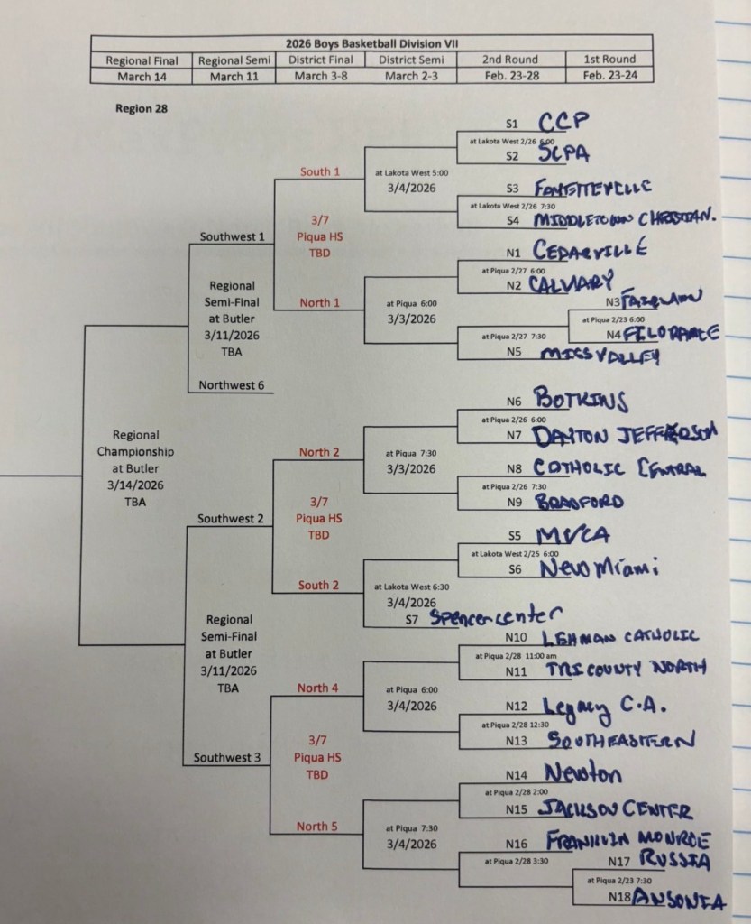 (2-15-26) Statewide brackets will be updated as ALL are being posted on the OHSAA site.