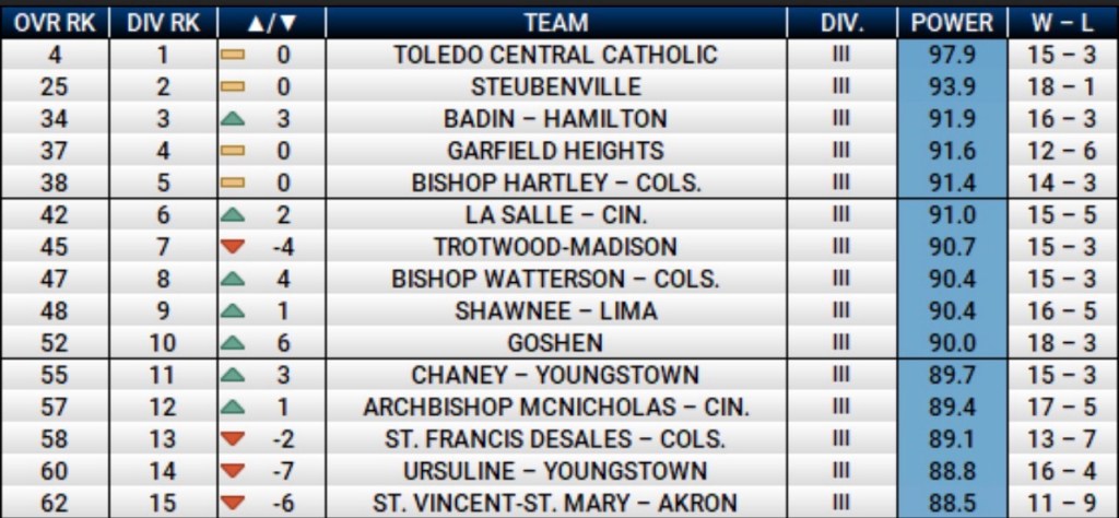 No. 3 Badin, No. 6 La Salle, No. 8 Bishop Watterson, and No. 10 Goshen all climbed multiple spots in the latest rankings. If nothing else, it reinforces the idea that southwest Ohio will be a gauntlet once teams converge at the Xavier regional next month.