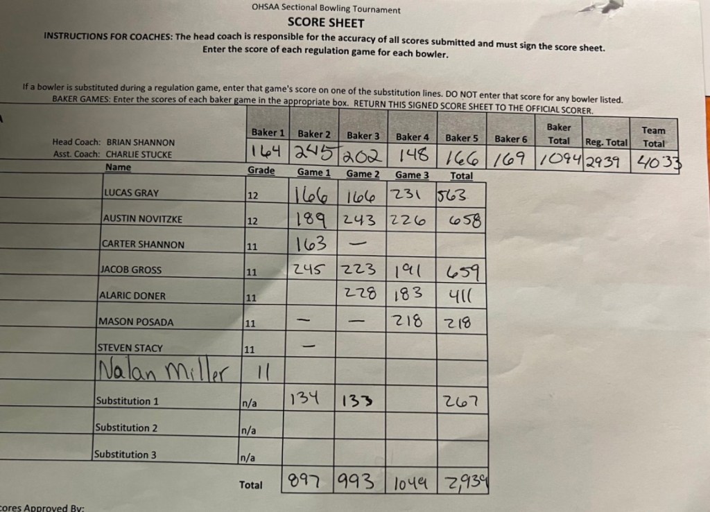 The Celina Boys Bowling teams takes 1st at sectionals and will move on to Districts next Thursday in Post Clinton
