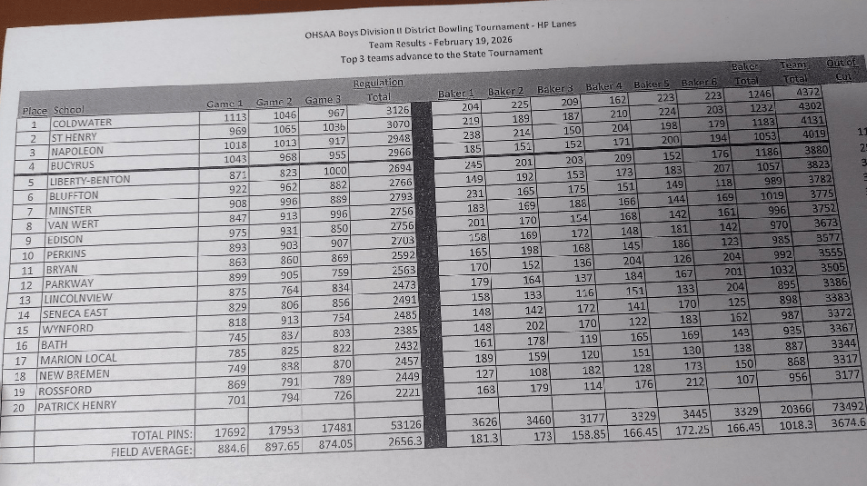Full results from the D2 Northwest District tourney from Interstate Lanes in Rossford.