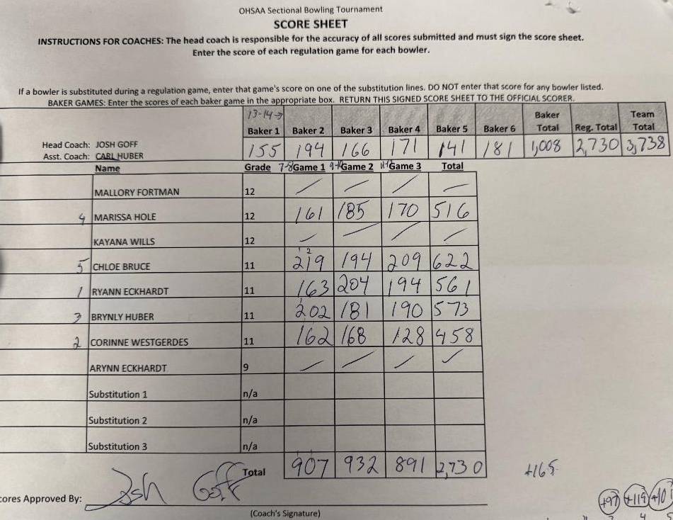 Delay was the theme of the day…but after 8 hours we brought home the W and are Sectional Champs! Chloe Bruce led all bowlers with a 622 series, Brynly Huber was 3rd with a 573 series and Ryann Eckhardt was 4th with a 561 series. The team battled tough lane conditions all day, lane breakdowns, and pace of play issues, but kept pushing and finished the day in first. Great job by the entire team.