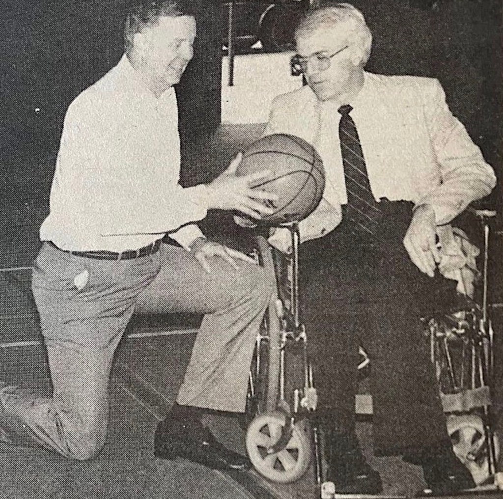 The photo here shows Pavy reunited with Rayl at Church Street Gym. The two met to reminisce about that game and promote the Great Indiana Shootout in 1986.