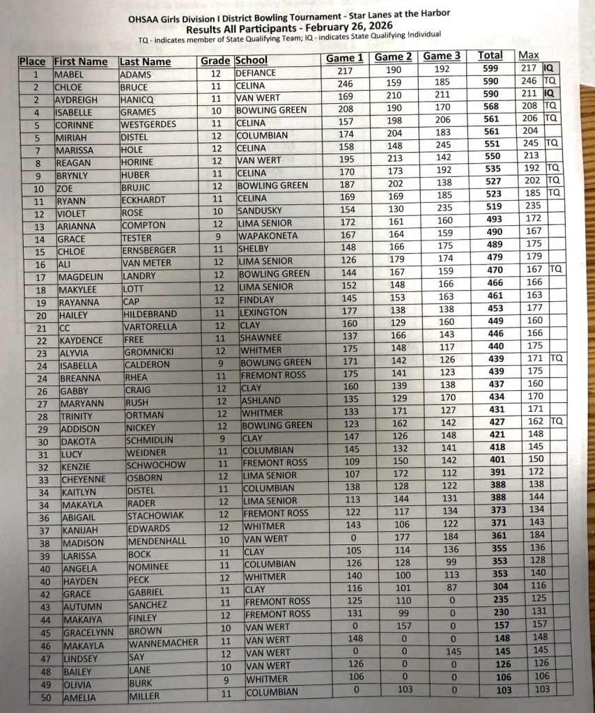 (2-25-26) The Celina Girls Bowling team won the D I District Championship at Star Lanes at the Harbor and punched their tickets to the State Championships.