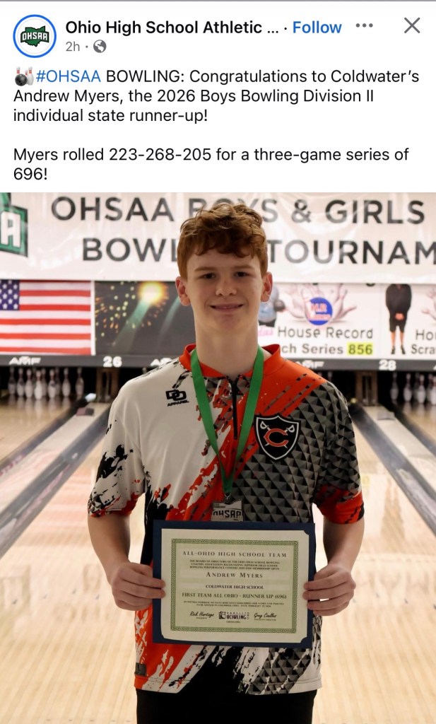 (2-27-26) Three out of four finalist in the final rounds of the OHSAA D II Boys State Bowling Championship were from the Midwest Athletic Conference.
