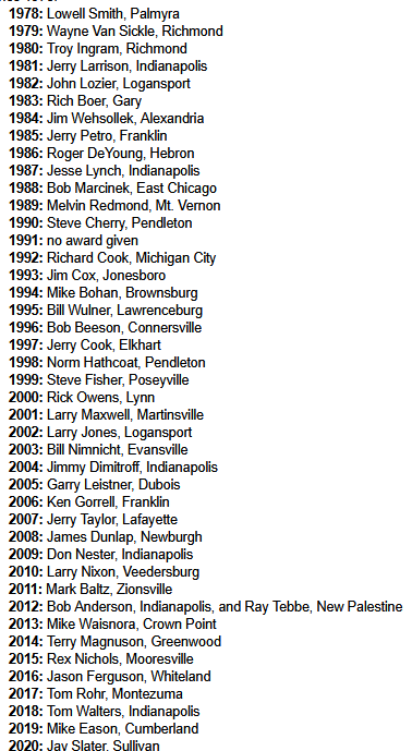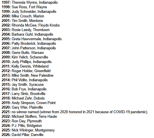 After working from 2001-24 as a teacher, coach and administrator for Monroe County Schools, including three seasons as a boys’ basketball assistant coach for Tom McKinney at Bloomington North, Pillar currently is in his second year as The Gardner Award is named after the late Roy Gardner, a Lawrenceburg native, Ball State graduate and former Batesville High School math teacher who worked three boys’ basketball State Finals and officiated in the Big Ten from 1959-69. He passed away in 1977, and the IBCA has presented an award in his name since 1978. Gardner was inducted into the Ball State Athletics Hall of Fame in 1981 and the Ripley County Basketball Hall of Fame in 2003.