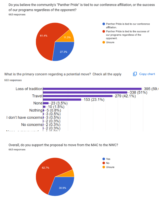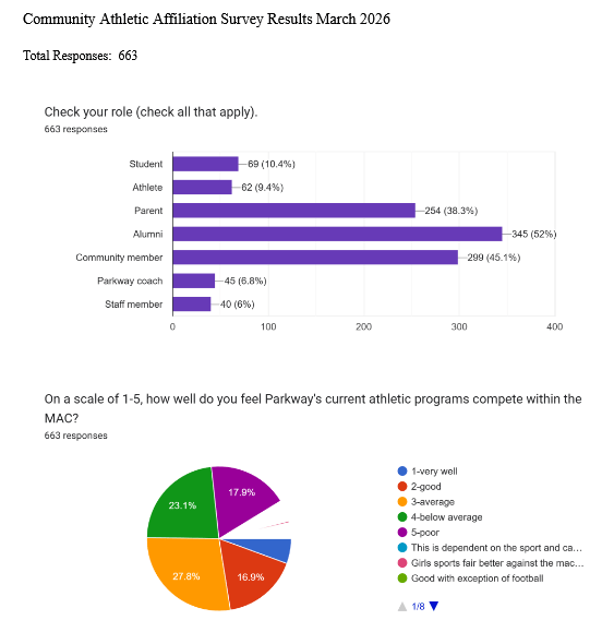 (3-16-26) Below is the Parkway Town Hall online survey results that were presented yesterday on future conference affiliation for the Panthers…stay in the Midwest Athletic Conference or move to the Northwest Conference.