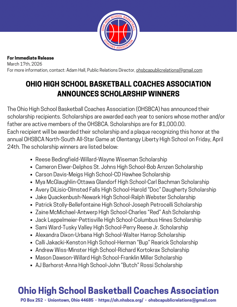 (3-17-26) Three Stateline area basketball players have received $1,000 OHSBCA Scholarships.