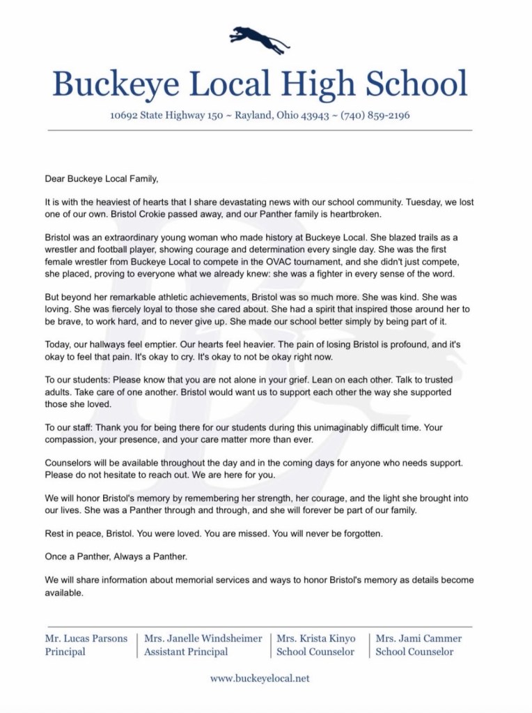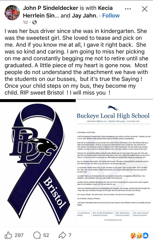 (3-19-26) Buckeye Local is mourning the loss of Sophomore Bristol Crokie (15) who passed away on Tuesday.